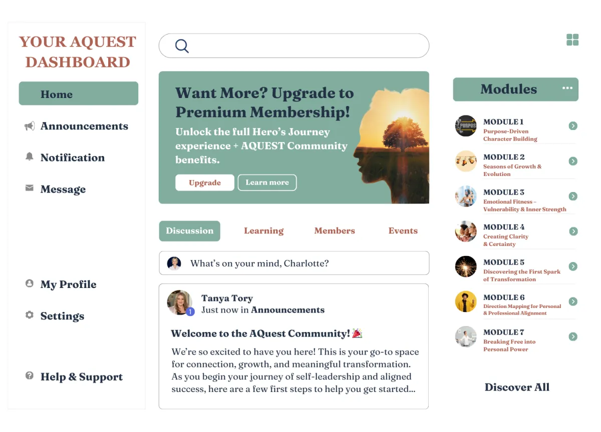 The Hero’s Journey Program is designed as an Affiliate Program within the AQUEST Community and WLW Program, setting clients up for self-success through mindset transformation.